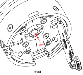 d.将控制板掀起,露出磁铁,注意掀起过程中控制板的3根焊线不能断开,如下图;
